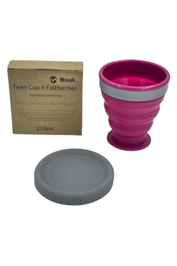 TeenCup is een opvouwbare multifunctionele beker die in elke tas, rugzak of zelfs in je broekzak past!